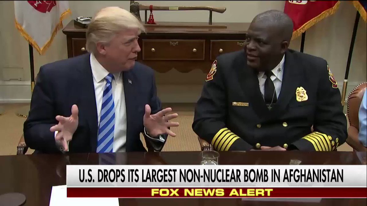 O presidente Trump disse a repórteres que estava feliz com o "sucesso" da ação contra os terroristas do AISI no Afeganistão usando a chamada "mãe de todas as bombas", antes de dizer que a Coréia do Norte também "será atendida".