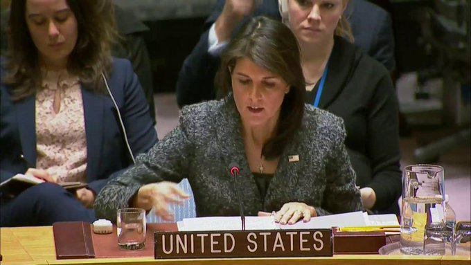Em um discurso igualmente adversário, a enviada dos EUA à ONU, Nikky Haley, criticou a Rússia por "obstruir a votação" sobre a resolução, que foi submetida na terça-feira e exigiu sua implementação imediata.